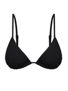 The Wave Triangle top is our quintessential shape. Double lined with soft removable cups and a slide function for coverage control. Shoulder straps are adjustable with silver hardware on straps and ties. If you prefer more coverage we recommend going up a size.